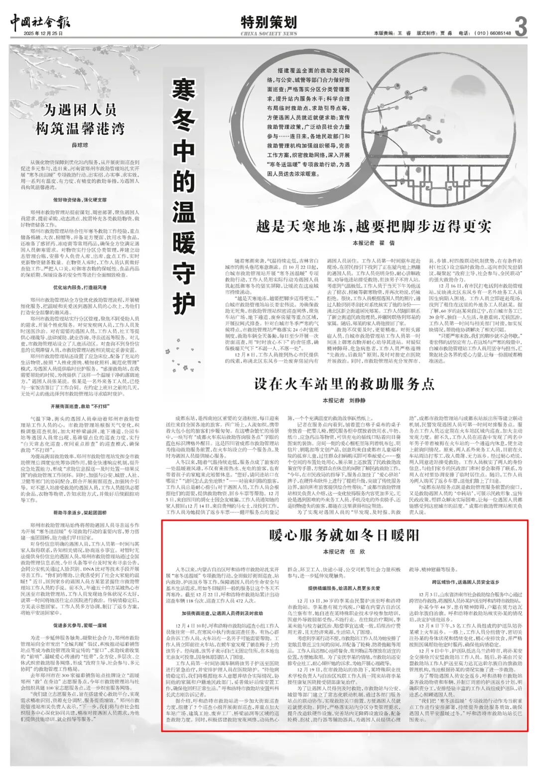 入冬以来,内蒙古自治区呼和浩特市救助站扎实开展“寒冬送温暖”专项救助行动,全面做好街面巡查、站内救助、护送返乡等工作,保障遇困人员的生命安全与基本生活需求,用如冬日暖阳一般的服务让这个冬天不再寒冷。截至目前,呼和浩特市救助站累计出动巡查车辆118台次、巡查工作人员472人次。 加强街面巡查 让遇困人员得到及时救助 1月4日10时,呼和浩特市救助站巡查小组工作人员像往常一样,在寒风中执行街面巡查任务。有热心群众告诉工作人员,火车站有一名男子可能需要帮助。工作人员立即前往火车站,在候车室发现了躺在椅子上的该男子。经沟通,该男子表示自己无固定住所,在本地也无亲友可投靠,因身体原因陷入了困境。 工作人员第一时间协调车辆将该男子护送至医院进行紧急治疗,并安排护理人员在医院陪护。“待他病情稳定后,我们将根据他本人意愿并结合实际情况,协同他的家属和户籍地民政部门,妥善做好后续安置工作,确保他回归正常生活。”呼和浩特市救助站安置科科长武志刚告诉记者。 据介绍,呼和浩特市救助站进一步加大街面巡查力度,组建了7个巡查小组开展街面巡查,并重点加大车站广场、建筑工地、废弃工厂、桥梁涵洞等区域的巡查救助力度。同时,积极搭建救助发现网络,动员热心群众、环卫工人、快递小哥、公交司机等社会力量积极参与,进一步延伸发现触角。 提供精细服务 给遇困人员更多关爱 1月5日,30岁的李某由民警护送至呼和浩特市救助站。李某患有视力残疾,户籍在内蒙古自治区乌兰察布市,她自述在某特殊职业技术学校参加培训,因意外导致腿部受伤,不能行走。在住院治疗期间,李某未能与校方就医治、赔偿事宜达成一致,后续治疗费用无着,且无经济来源,生活陷入了困境。 考虑到李某行动不便,市救助站工作人员为她安排了宽敞且靠近卫生间的房间,并配备了轮椅、防滑拖鞋等用品。工作人员还细心地将餐食、常用物品等摆放在适宜的位置,方便她取用。为了安抚李某的情绪,市救助站还安排专业社工,耐心倾听她的诉求,为她开展心理疏导。 近日,在市救助站的协助下,某特殊职业技术学校负责人与自治区残联工作人员一同来站将李某接往康复医院接受腿部康复治疗。 为了让遇困人员得到及时救助,市救助站与公安、城管等部门建立了常态化联动机制,通过各部门服务站点的联动协作,实现救助关口前置,方便遇困人员就近就便求助。同时,严格落实站内分区分类管理要求,提升改造软硬件设施,完善站内无障碍设施设备,配备轮椅、拐杖、助行器等辅助器具,为遇困人员提供心理疏导、精神慰藉等服务。 跨区域协作 送遇困人员安全返乡 近日,山东省济南市社会救助综合服务中心通过跨省协作救助,将遇困人员孙某护送至呼和浩特市救助站。 孙某今年44岁,患有精神障碍,户籍在莫力达瓦达斡尔族自治旗。呼和浩特市救助站核实孙某的情况后,决定护送他返乡。 当日下午,3名工作人员组成的护送队陪孙某乘上火车返乡。一路上,工作人员分组值守,密切关注孙某的身体状况和情绪变化,精心安排饮食,并严格按照医嘱帮助他定时服药,确保他病情稳定。 护送队抵达乌兰浩特市,将孙某安全交接给兴安盟救助站工作人员。随后,孙某由兴安盟救助站工作人员护送至莫力达瓦达斡尔族自治旗救助管理机构,当地根据孙某的情况实施了进一步救助。 为了帮助遇困人员安全返乡,呼和浩特市救助站备齐救助物资和车辆,并制订周密的护送返乡计划,明确职责分工,安排经验丰富的工作人员组成护送队,沿途悉心照顾遇困人员。 “我们把‘寒冬送温暖’专项救助行动作为当前重点工作进行安排部署,持续提升救助服务质效,确保遇困人员平安温暖过冬。”呼和浩特市救助站站长巴图表示。 转发至: